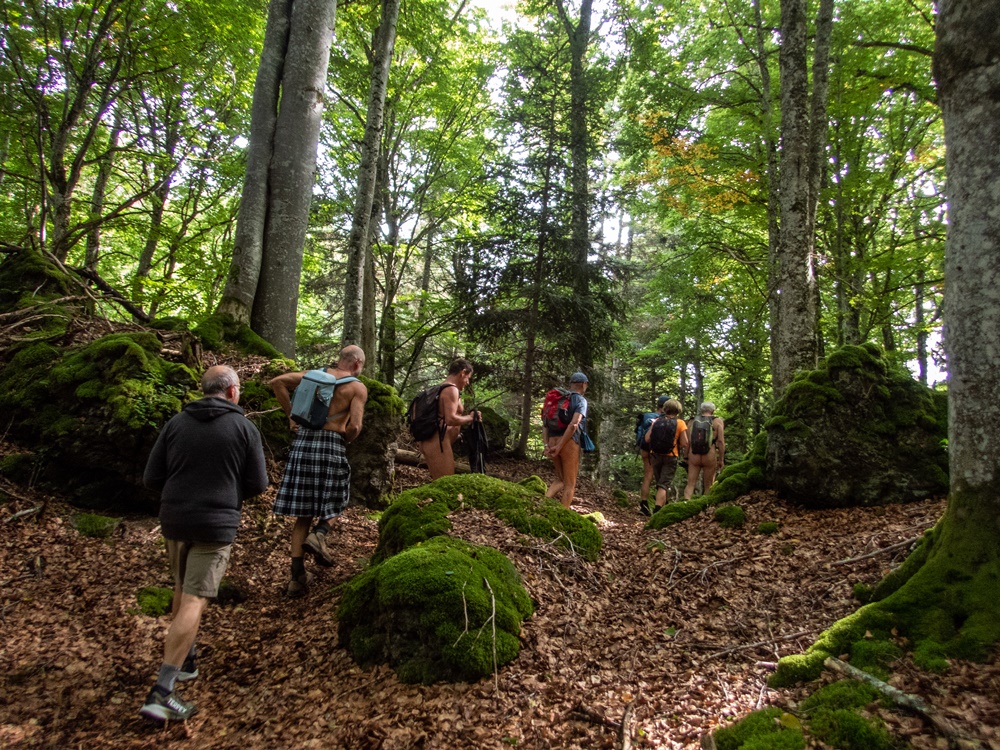 I have been hiking naked, alone or in groups, for about twenty years. So for me it’s something completely natural, but I know that taking the plunge into nudity on the trails may not seem so easy to some naturists who are used to closed centers, or even more so to newcomers who are just starting out in naturism or want to try this practice that made headlines during the summer season. There are still few associations or groups that offer introductory sessions, and they are not necessarily well known. I was naturally interested in the idea launched by Bruno du Vexin and Bruno de Chartreuse for a Naked Hiking Conference to facilitate meetings, exchanges of practices, and training. I offered to prepare a workshop on cartography and orienteering and to present the association of Naked Walkers du Val de Roanne, of which I am president.